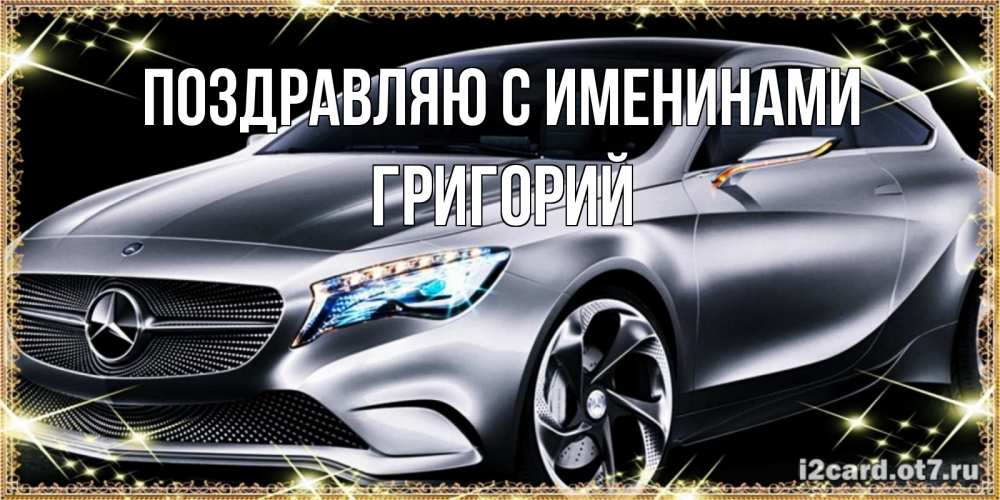 Открытка Поздравляю с именинами Григорий. машина на день рождения в рамочке с подписью. машина мерседес супер класс