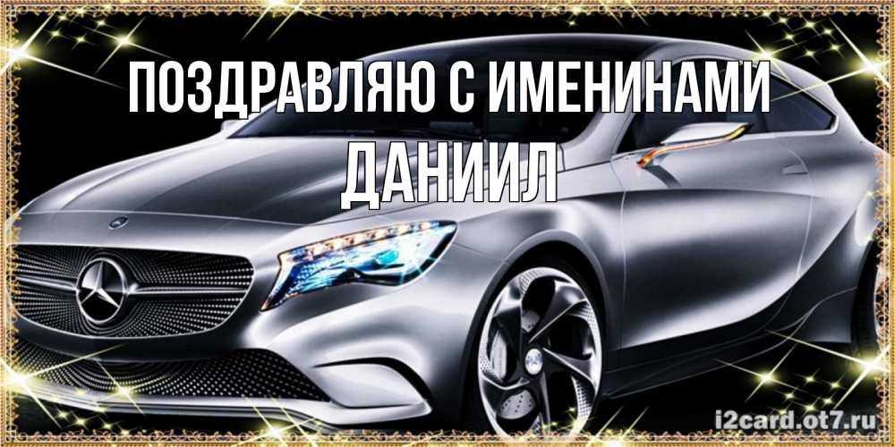 Открытка Поздравляю с именинами Даниил. машина на день рождения в рамочке с подписью. машина мерседес супер класс