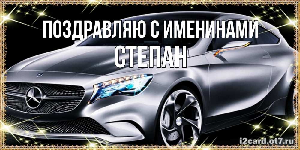 Открытка Поздравляю с именинами Степан. машина на день рождения в рамочке с подписью. машина мерседес супер класс