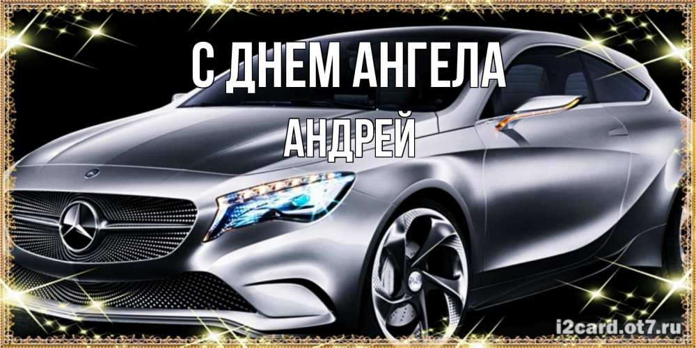 Открытка С днем Ангела Андрей. машина на день рождения в рамочке с подписью. машина мерседес супер класс