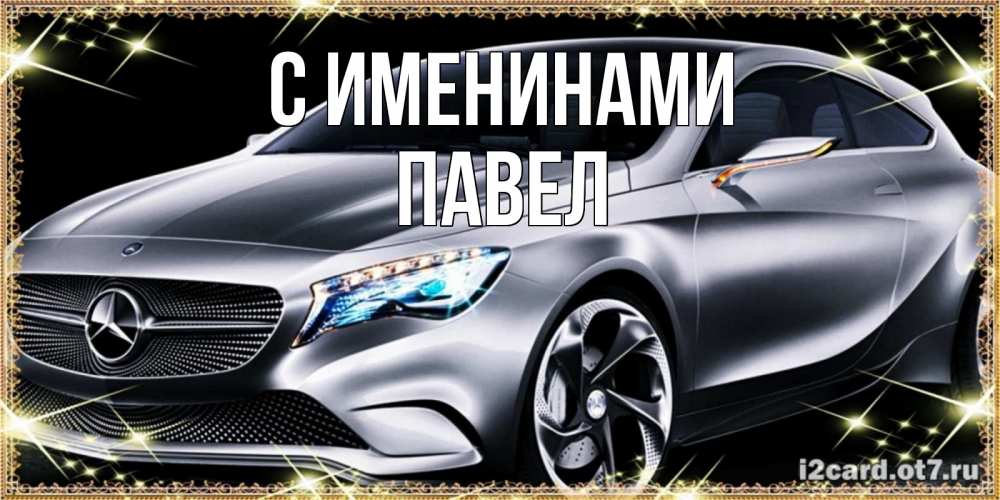 Открытка С именинами Павел. машина на день рождения в рамочке с подписью. машина мерседес супер класс
