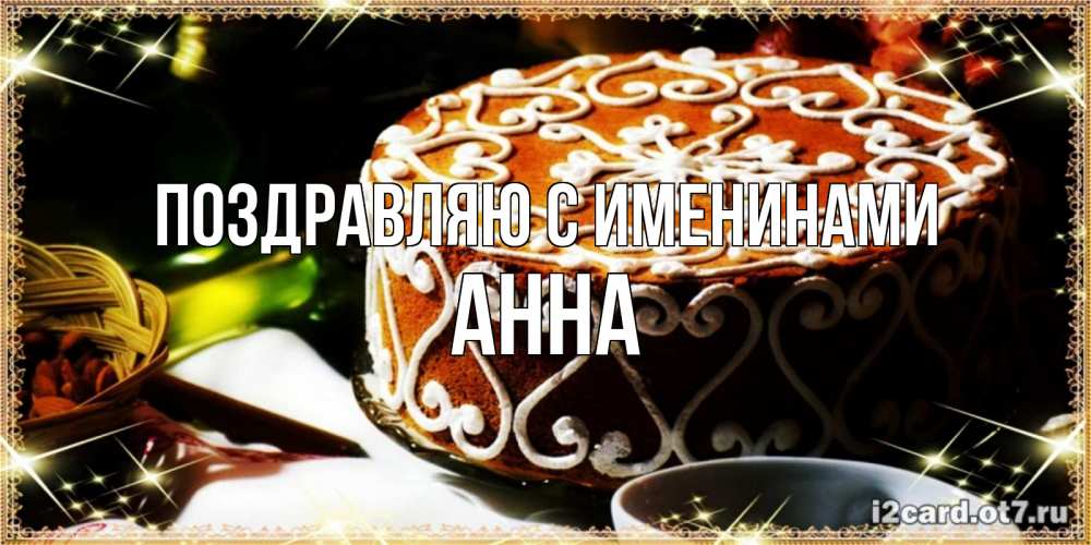 Открытка Поздравляю с именинами Анна. торт с узорами на день родения. открытка с тортом на день рождения