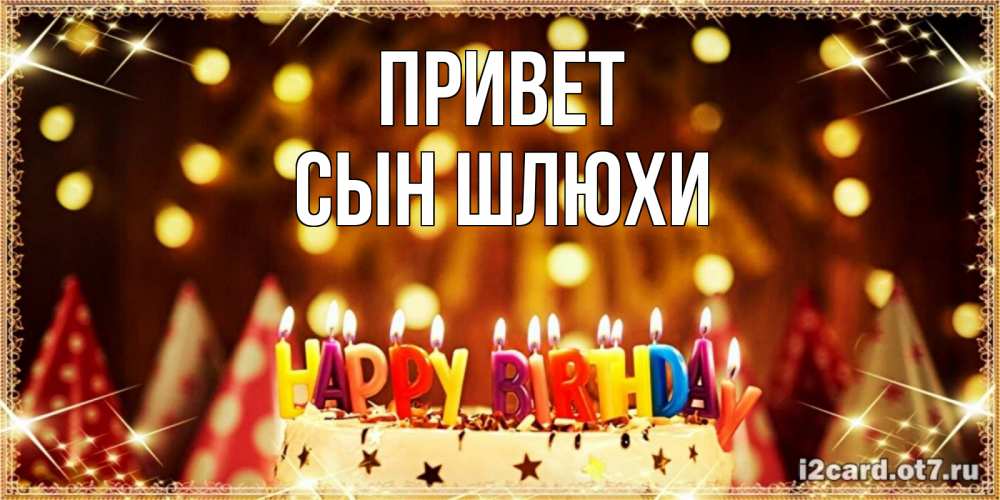 Открытка Привет Сын шлюхи. торт с горящими свечками на день рождения. торт и надпись свечками на английском happy birthday