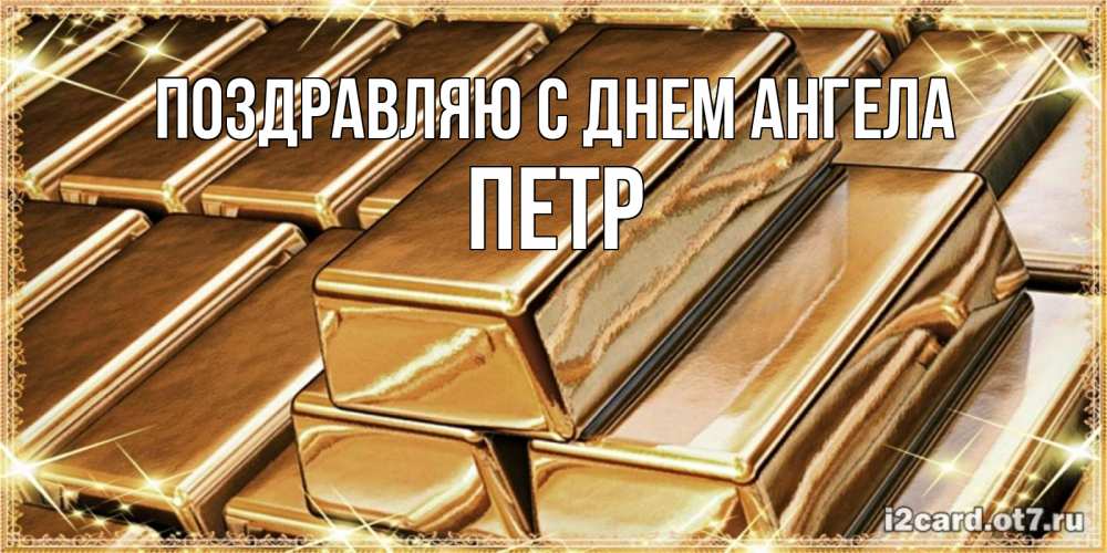 Открытка Поздравляю с днем Ангела Петр. золотые слитки на день рождения. поздравления на день рождения с пожеланиями богатства