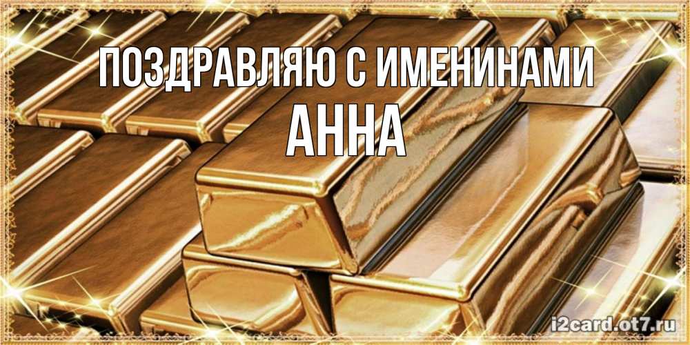 Открытка Поздравляю с именинами Анна. золотые слитки на день рождения. поздравления на день рождения с пожеланиями богатства