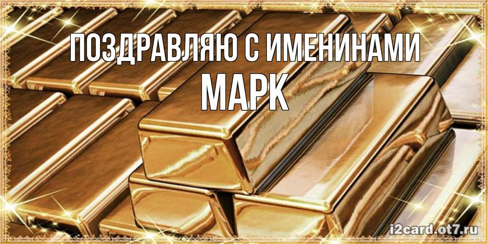 Открытка Поздравляю с именинами Марк. золотые слитки на день рождения. поздравления на день рождения с пожеланиями богатства