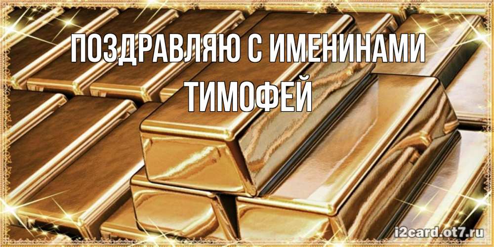 Открытка Поздравляю с именинами Тимофей. золотые слитки на день рождения. поздравления на день рождения с пожеланиями богатства
