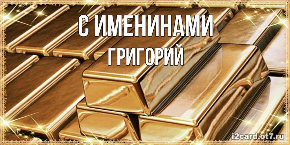 Открытка С именинами Григорий. золотые слитки на день рождения. поздравления на день рождения с пожеланиями богатства