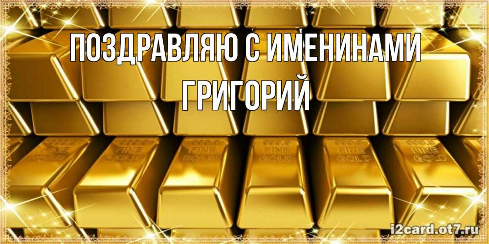 Открытка Поздравляю с именинами Григорий. золото на день рождения для богатства. открытки с пожеланиями финансовой стабильности