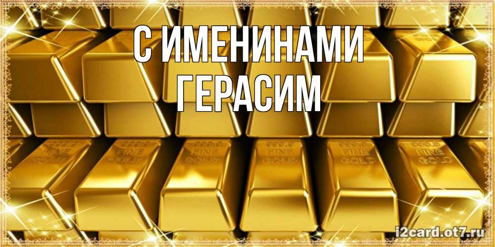 Открытка С именинами Герасим. золото на день рождения для богатства. открытки с пожеланиями финансовой стабильности