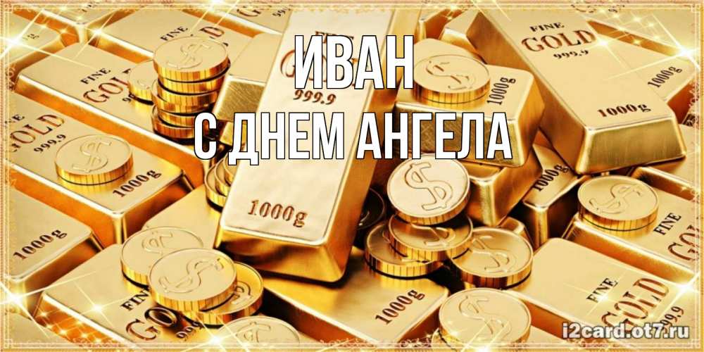 Открытка Иван С днем ангела. открытки с золотыми слитками на день рождения для друзей. золотые слитки и золотые монеты на открытке