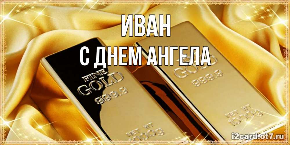 Открытка Иван С днем ангела. золотые слитки на золотой ткани. золотые слитки лежат шелке золотого цвета