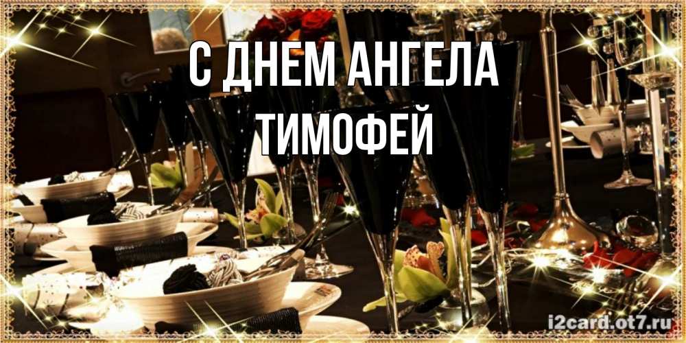 Открытка С днем Ангела Тимофей. застолье. пожелания на день рождения с столом полным еды