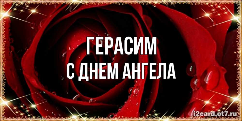 Открытка Герасим С днем ангела. бордовая роза в росе. цветок в росе на день рождения