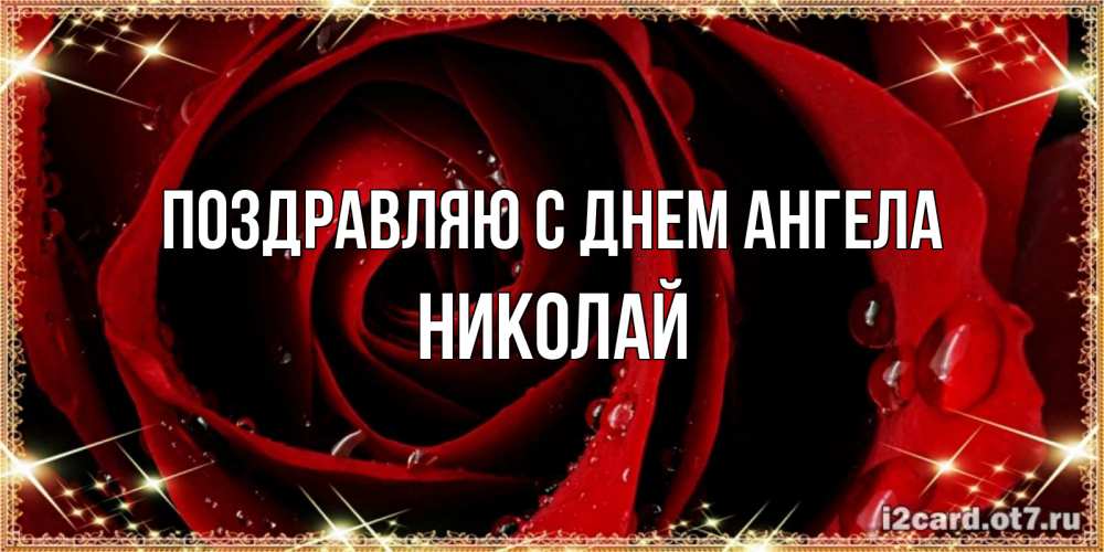 Открытка Поздравляю с днем Ангела Николай. бордовая роза в росе. цветок в росе на день рождения