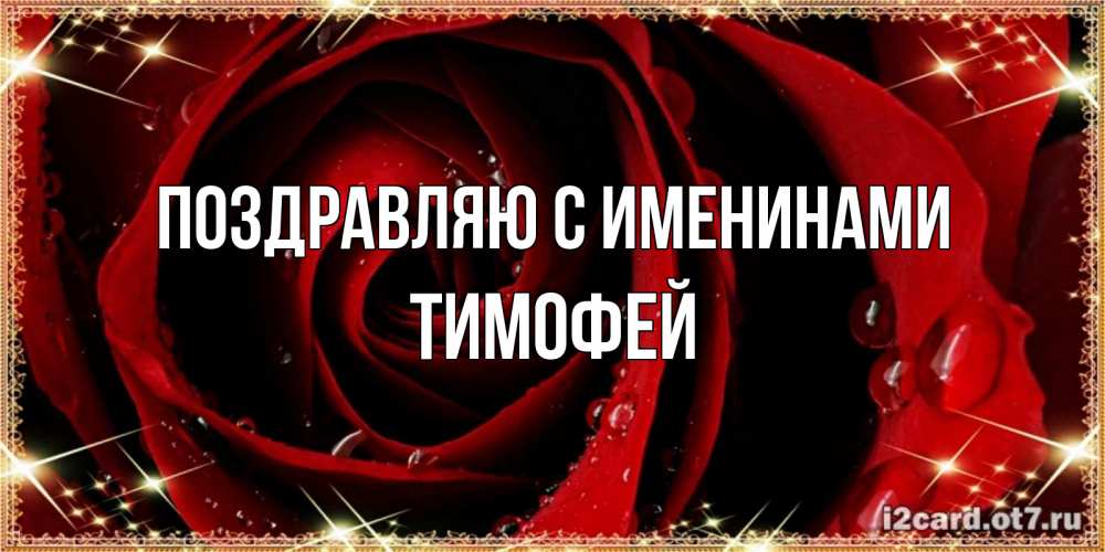 Открытка Поздравляю с именинами Тимофей. бордовая роза в росе. цветок в росе на день рождения