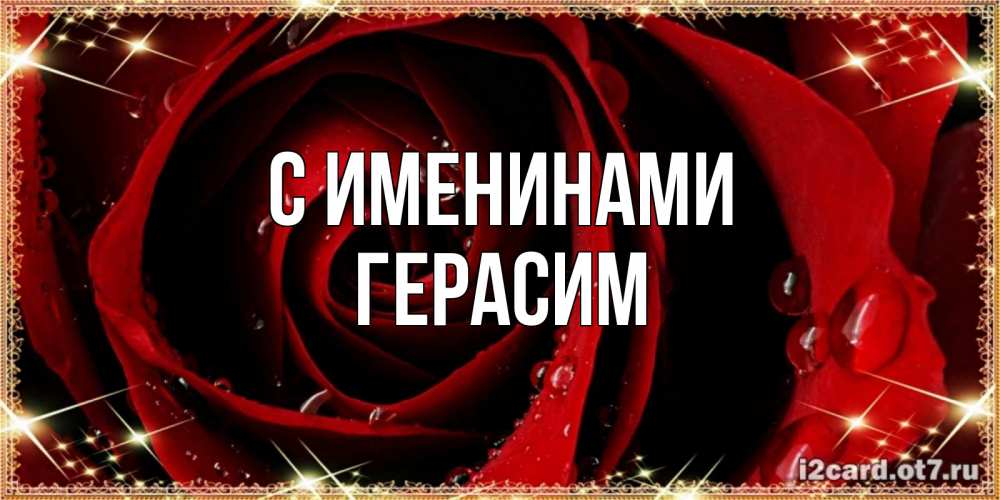 Открытка С именинами Герасим. бордовая роза в росе. цветок в росе на день рождения