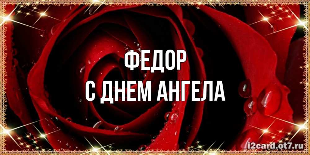 Открытка Федор С днем ангела. бордовая роза в росе. цветок в росе на день рождения