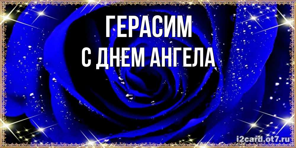 Открытка Герасим С днем ангела. голубая роза на день рождения для дам. голубые цветы в росе