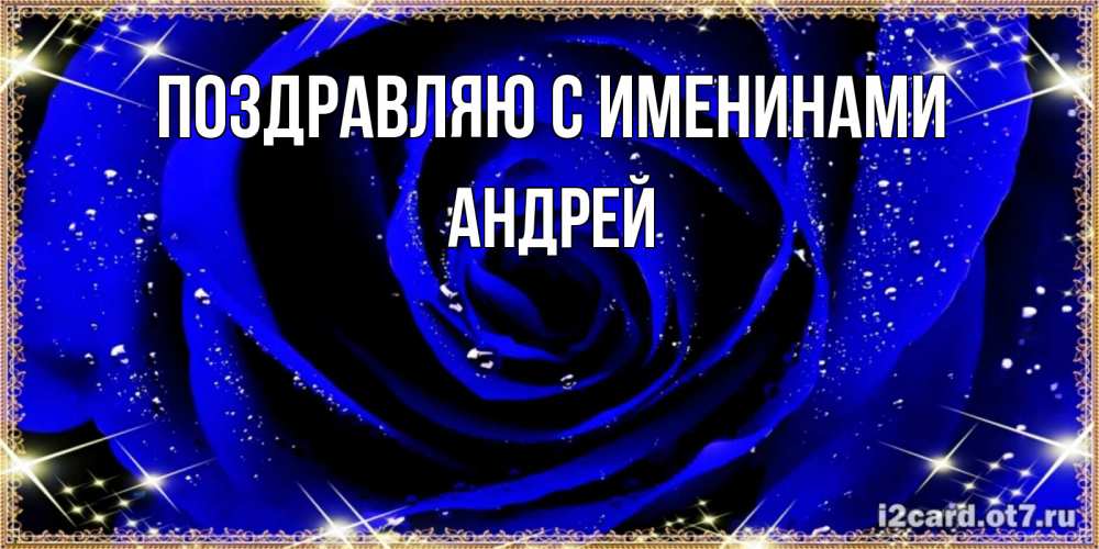 Открытка Поздравляю с именинами Андрей. голубая роза на день рождения для дам. голубые цветы в росе