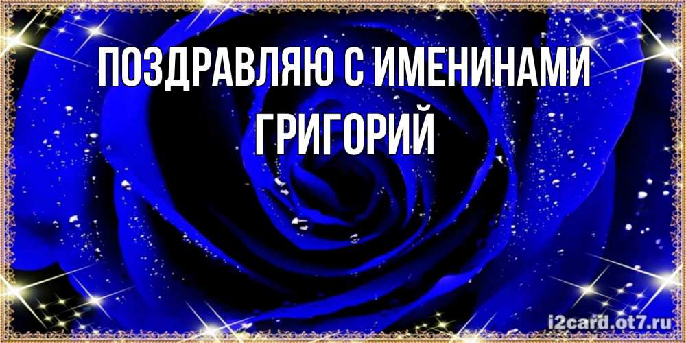 Открытка Поздравляю с именинами Григорий. голубая роза на день рождения для дам. голубые цветы в росе