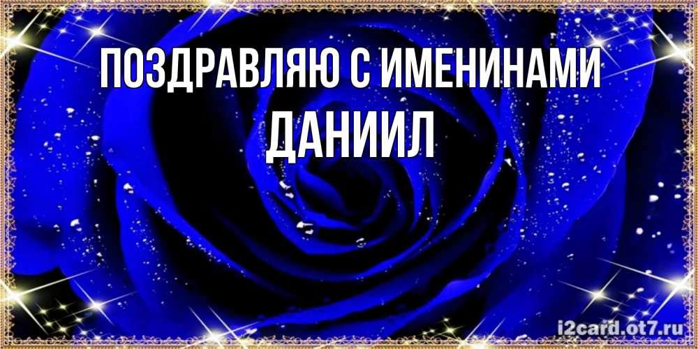 Открытка Поздравляю с именинами Даниил. голубая роза на день рождения для дам. голубые цветы в росе