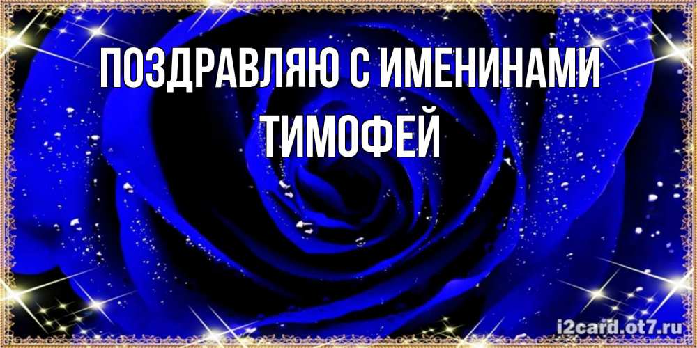 Открытка Поздравляю с именинами Тимофей. голубая роза на день рождения для дам. голубые цветы в росе