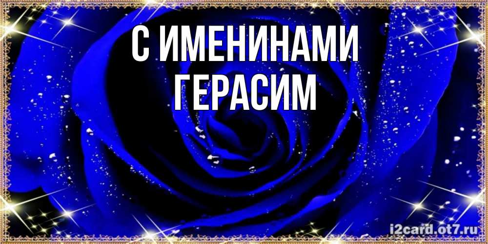 Открытка С именинами Герасим. голубая роза на день рождения для дам. голубые цветы в росе
