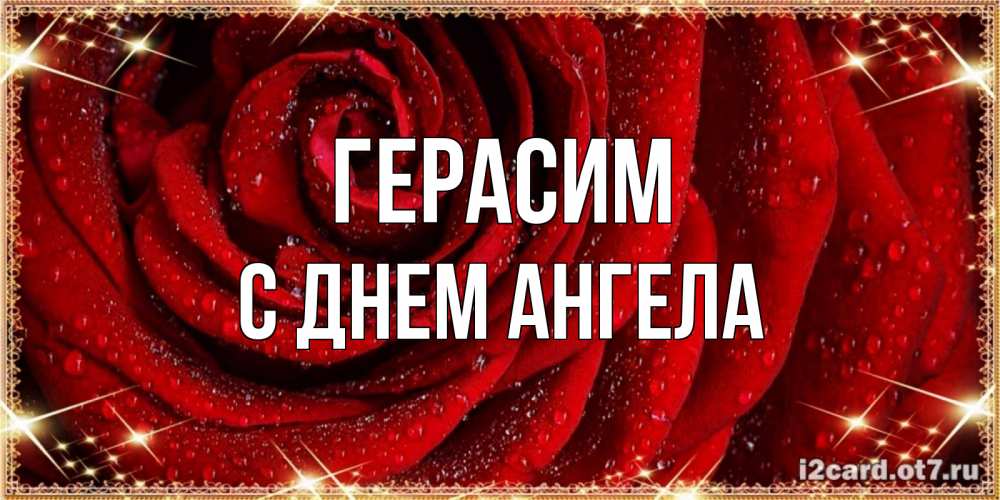 Открытка Герасим С днем ангела. роза в росе и звездах. роса на розе блестящая в лучах солнца