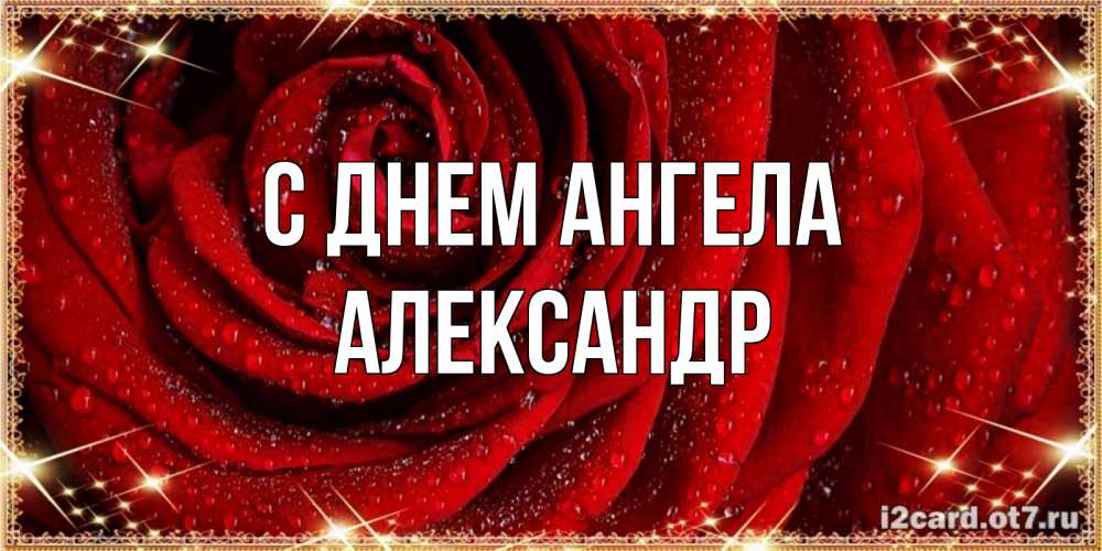 Открытка С днем Ангела Александр. роза в росе и звездах. роса на розе блестящая в лучах солнца
