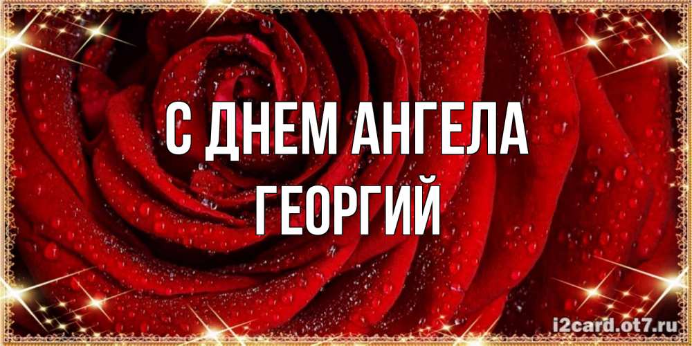 Открытка С днем Ангела Георгий. роза в росе и звездах. роса на розе блестящая в лучах солнца