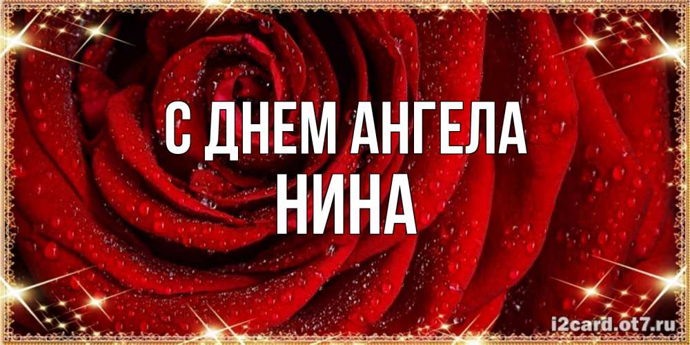 Открытка С днем Ангела Нина. роза в росе и звездах. роса на розе блестящая в лучах солнца