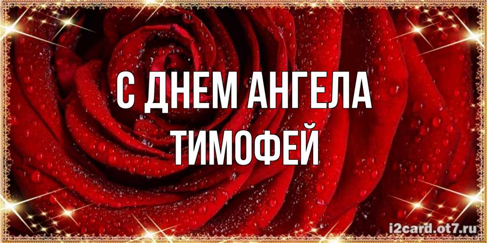 Открытка С днем Ангела Тимофей. роза в росе и звездах. роса на розе блестящая в лучах солнца