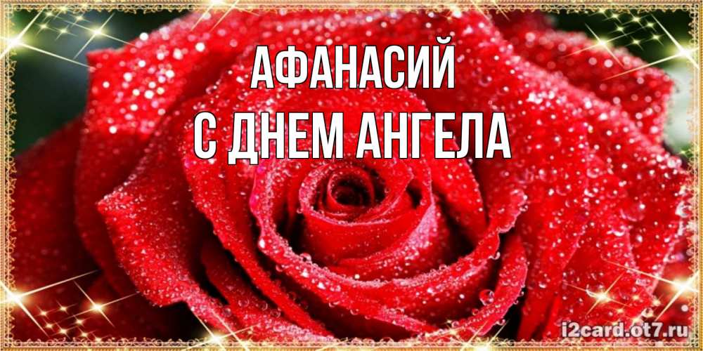 Открытка Афанасий С днем ангела. роса блестит на розе всего одна роза в росе. роса и роза. открытка с красивой розой