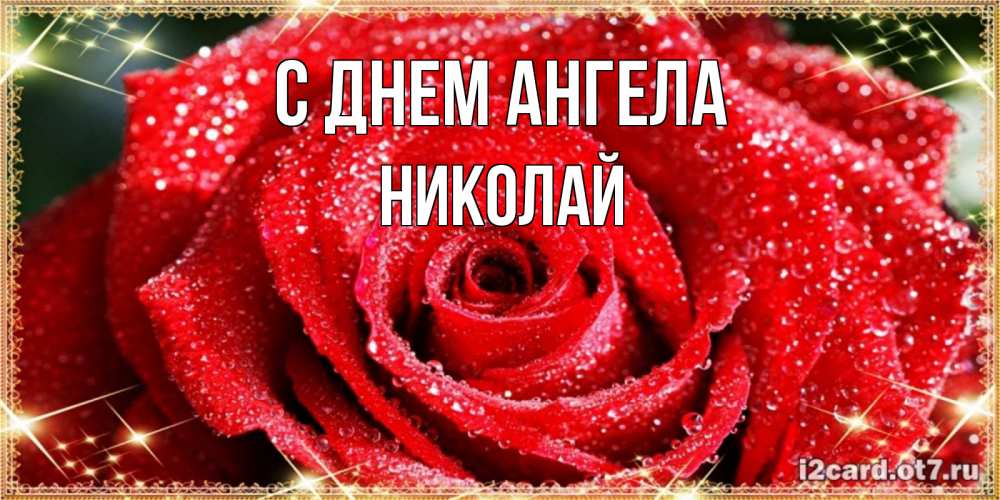 Открытка С днем Ангела Николай. роса блестит на розе всего одна роза в росе. роса и роза. открытка с красивой розой