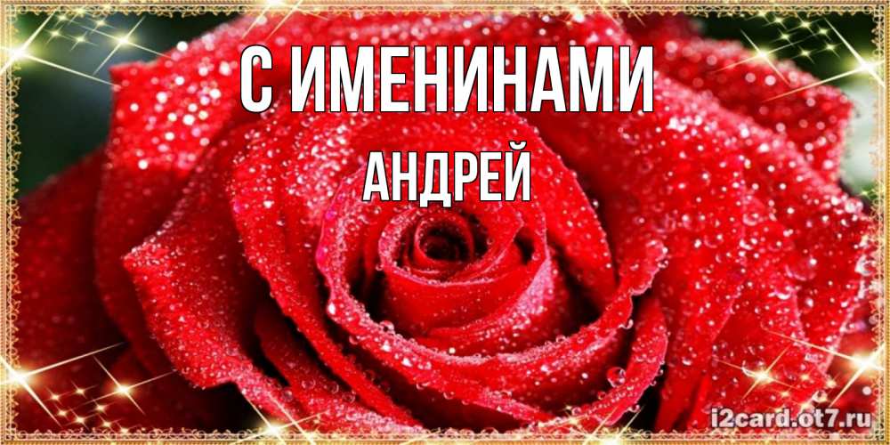 Открытка С именинами Андрей. роса блестит на розе всего одна роза в росе. роса и роза. открытка с красивой розой