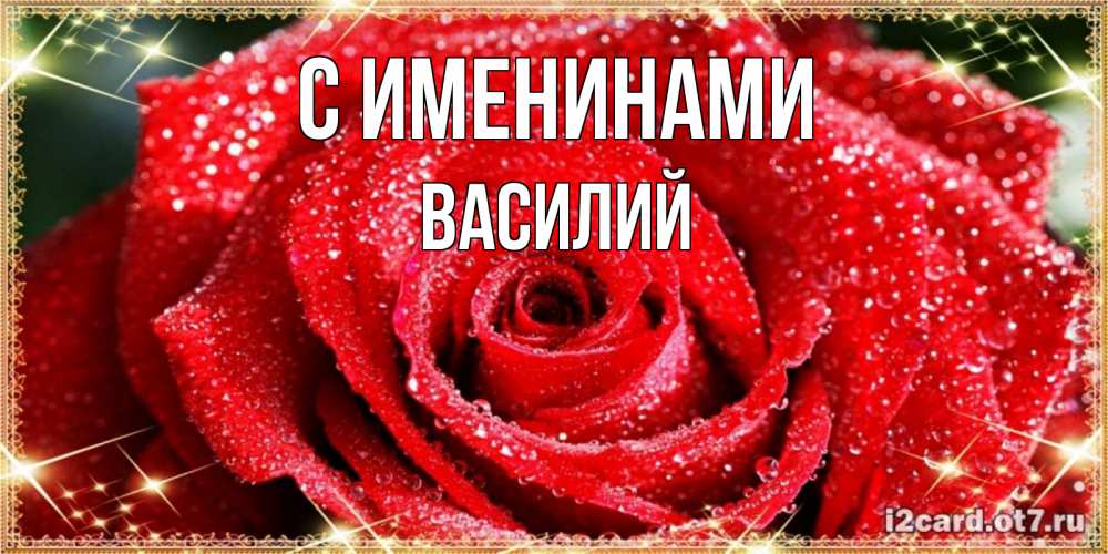 Открытка С именинами Василий. роса блестит на розе всего одна роза в росе. роса и роза. открытка с красивой розой