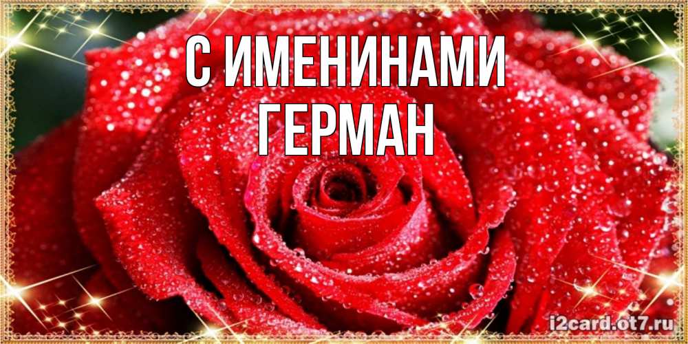 Открытка С именинами Герман. роса блестит на розе всего одна роза в росе. роса и роза. открытка с красивой розой