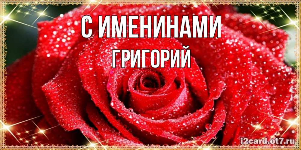 Открытка С именинами Григорий. роса блестит на розе всего одна роза в росе. роса и роза. открытка с красивой розой