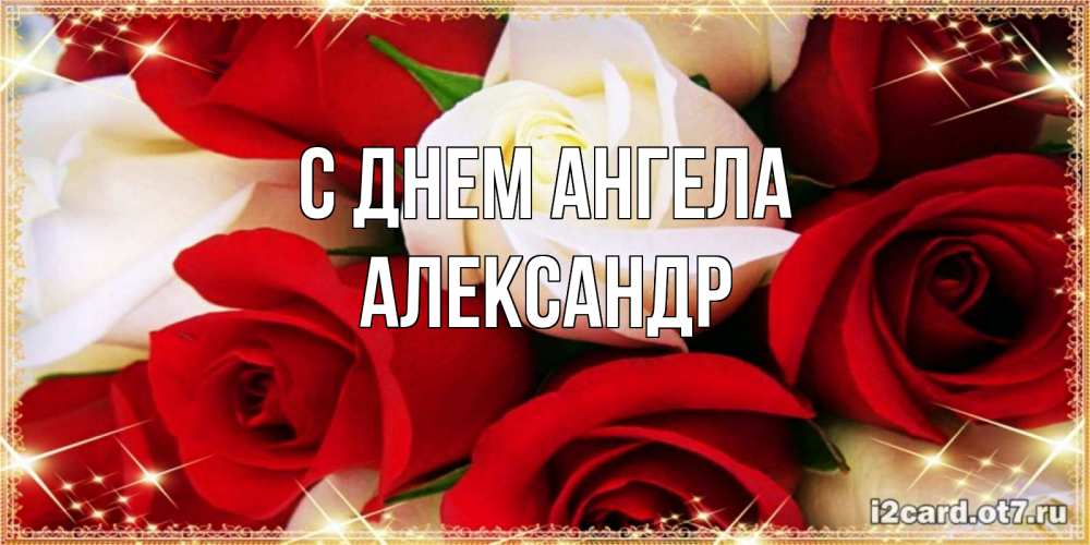 Открытка С днем Ангела Александр. белые и красные розы для любимых. открытка на день рождения с белыми и красными розами