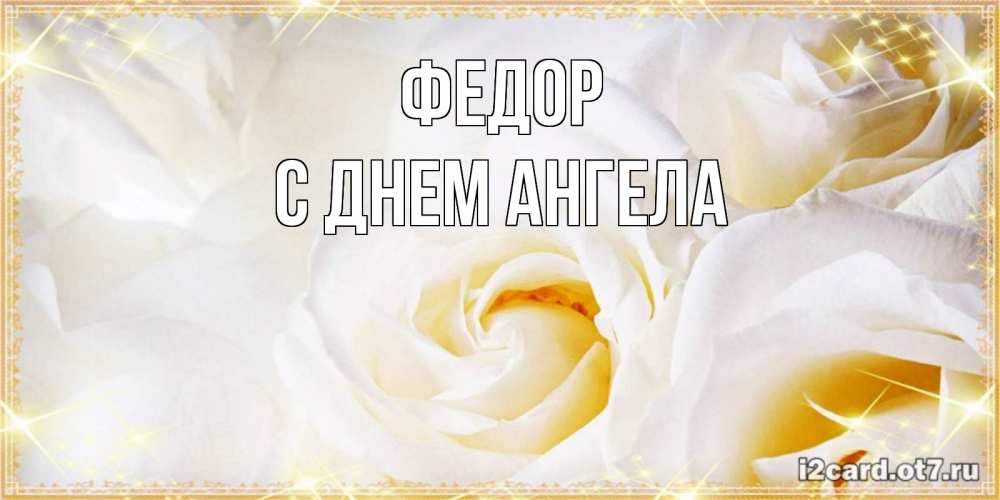 Открытка Федор С днем ангела. белые розы и на них блестит роса. красивые розы и капли росы на этих чудесных цветах