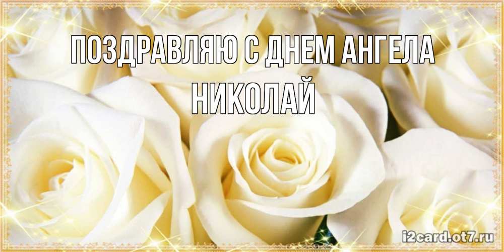 Открытка Поздравляю с днем Ангела Николай. белые розы для родных людей. розочки белого цвета на открытке