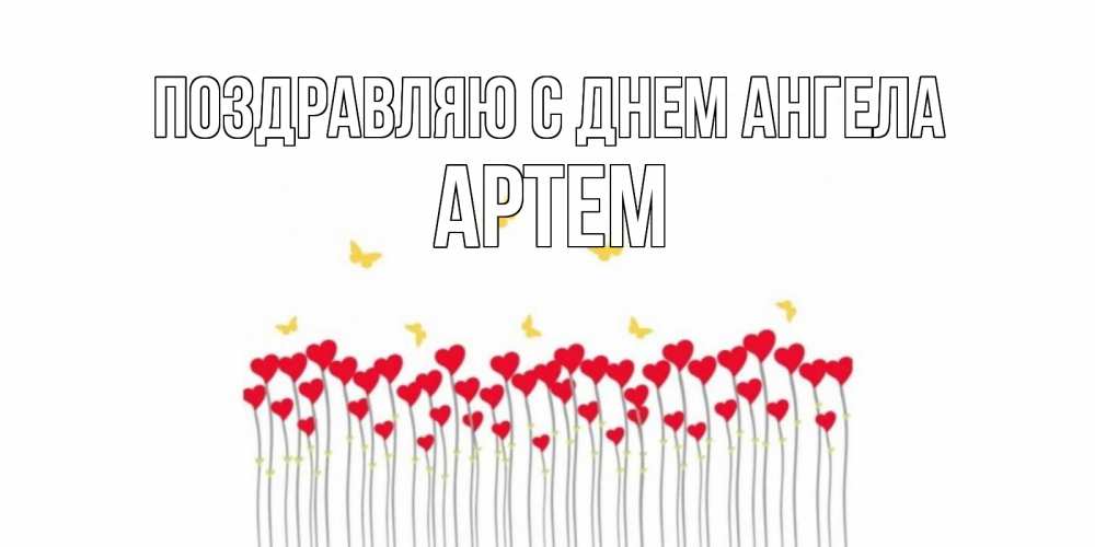 Открытка Поздравляю с днем Ангела Артем. бабочки и сердечки. бабочки,сердечки