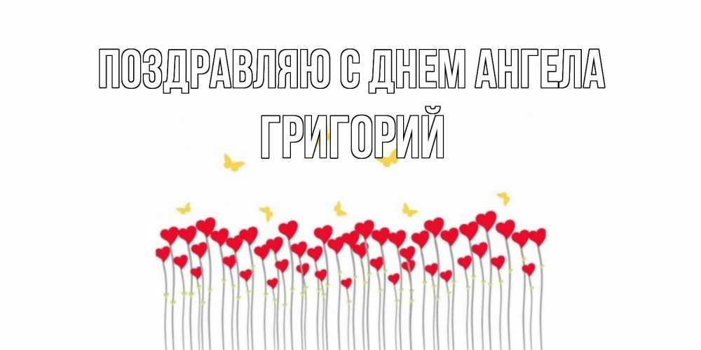 Открытка Поздравляю с днем Ангела Григорий. бабочки и сердечки. бабочки,сердечки