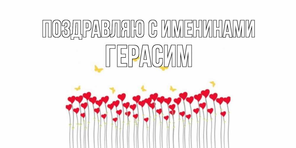 Открытка Поздравляю с именинами Герасим. бабочки и сердечки. бабочки,сердечки