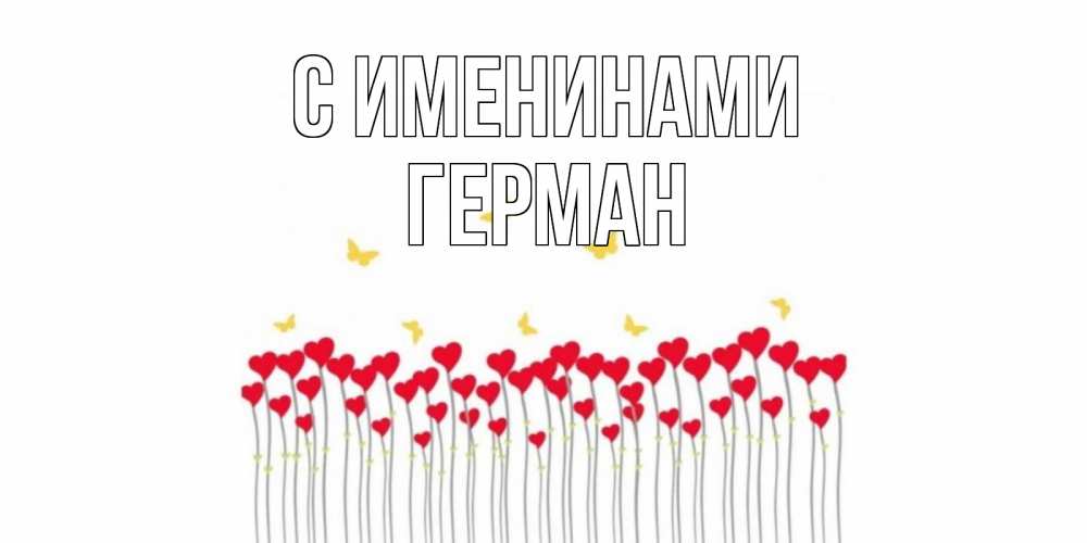 Открытка С именинами Герман. бабочки и сердечки. бабочки,сердечки