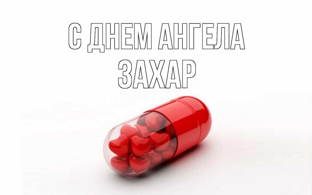 Открытка С днем Ангела Захар. капсула с сердечками. сердце