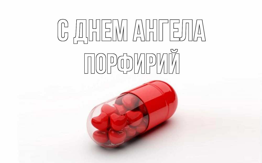 Открытка С днем Ангела Порфирий. капсула с сердечками. сердце