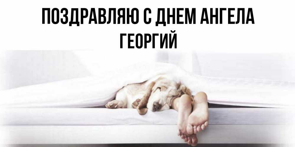 Открытка Поздравляю с днем Ангела Георгий. Открытка спокойной ночи с собакой и ногами. кровать с собакой пожелание сладких снов и спокойной ночи