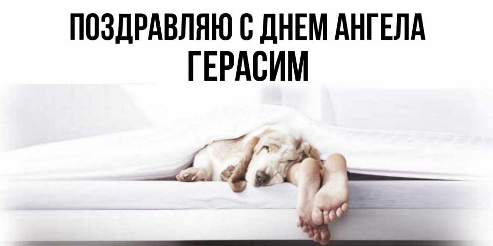 Открытка Поздравляю с днем Ангела Герасим. Открытка спокойной ночи с собакой и ногами. кровать с собакой пожелание сладких снов и спокойной ночи